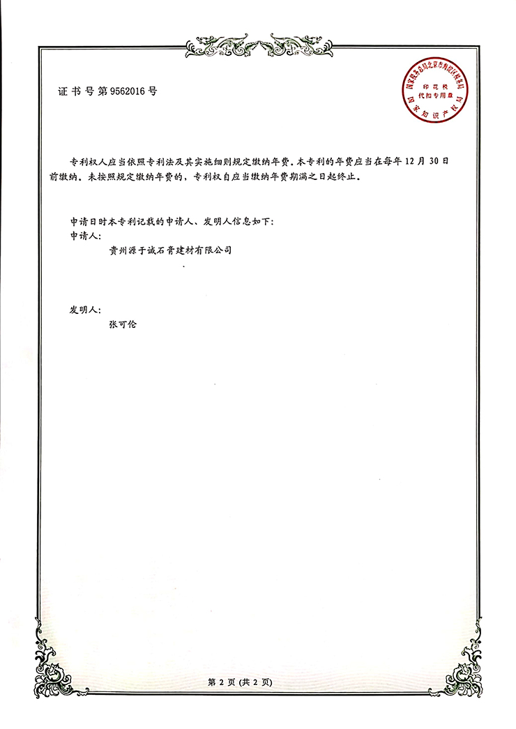 下一篇:專利證書(一種石膏板側(cè)壁紙面粘結(jié)裝置)