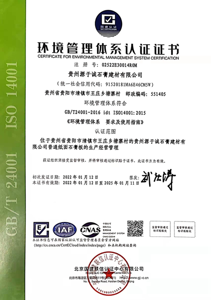 環(huán)境管理體系認(rèn)證證書
